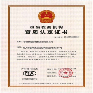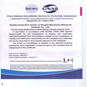公司是國家高新技術企業、國家創新型試點企業、國家知識產權優勢企業、寧夏知識產權示范企業、自治區專精特新示范企業、銀川市小巨人企業。公司擁有國家級模壓淬火技術與裝備國家地方工程實驗室寧夏裝備制造業技術服務與質量檢驗檢測服務平臺”,取得了CMA和CNAS資質,可向社會出具檢驗檢測報告;自治區級寧夏模壓淬火機床工程技術研究中心企業技術中心。2003年通過ISO9001-2000質量體系認證,2014年通過CNAS國家實驗室認證,2017年通過國家質量/環境/職業健康安全管理體系認證。